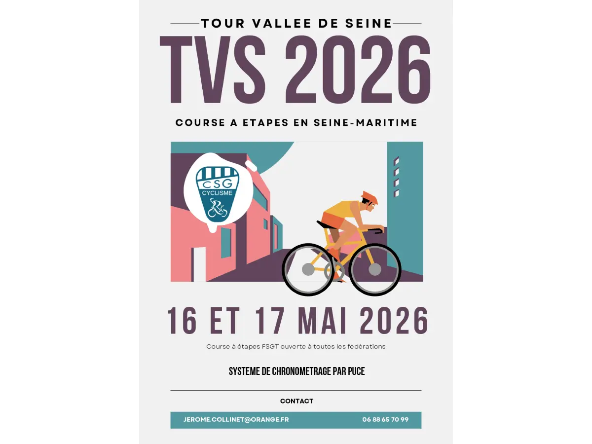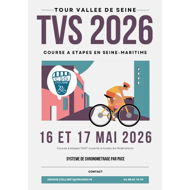 Le Tour Vallée de Seine revient les 16 et 17 mai 2026 avec une course cycliste à étapes ouverte à plusieurs fédérations (FSGT, FFC, UFOLEP).